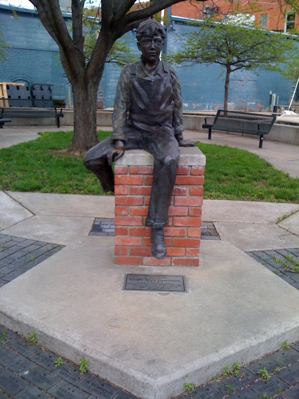 - We are concerned that through the federal appropriations process “top dollar” has been spent on a memorial design that lacks originality and doesn’t meet common-sense sustainability demands. The statue of a young “barefoot” Dwight Eisenhower has already been done in his hometown of Abilene, where he grew up (see photo above). The idea of metal tapestries has also already been used by Frank Gehry on parking garages in Santa Monica, California and Miami Beach, Florida.
