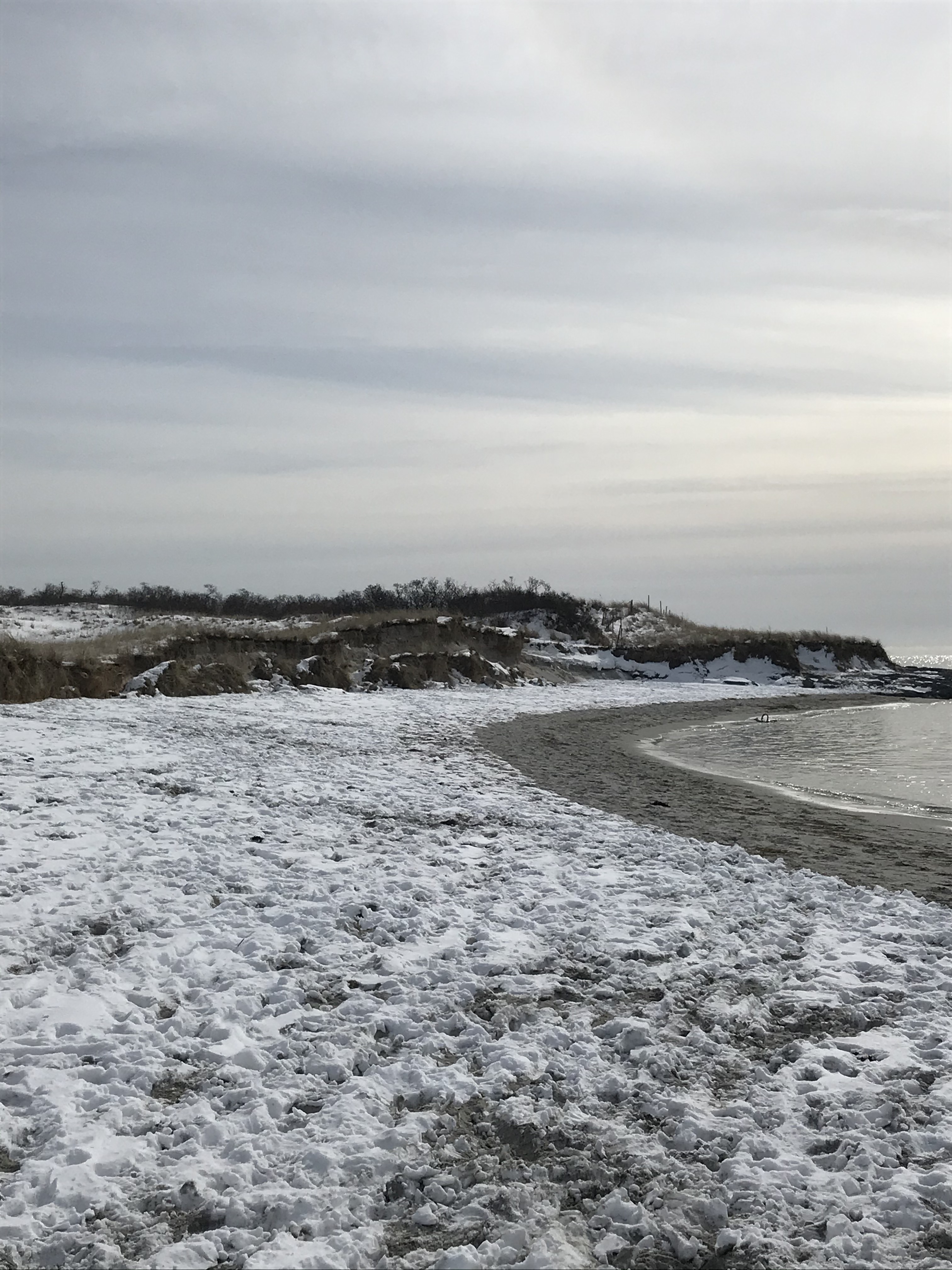 I have always been a walker and when the snow came in December and January, I was struggling to manage a robust outing on sometimes very icy roads. A local friend suggested I walk on the beach. This seemed counterintuitive to me, but she insisted. “Even if the roads freeze, the beaches never do because of the tides,” she explained. “The ‘warmth’ of the water keeps the beaches clear and delineates a perfect path for walking or running.” I tried it, and in doing so found that the loss of a family holiday did not sting quite so sharply. The peace that came from connecting with the bay and the ocean built in me a kind of resilience and determination each day, ironically turning a seemingly lonely, solitary road into a path of anticipation and empowerment.