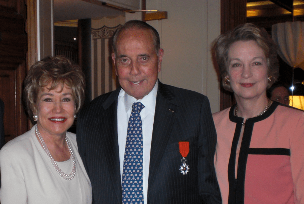 Right: Susan Eisenhower and Senator Bob Dole in Normandy, France, 2009.